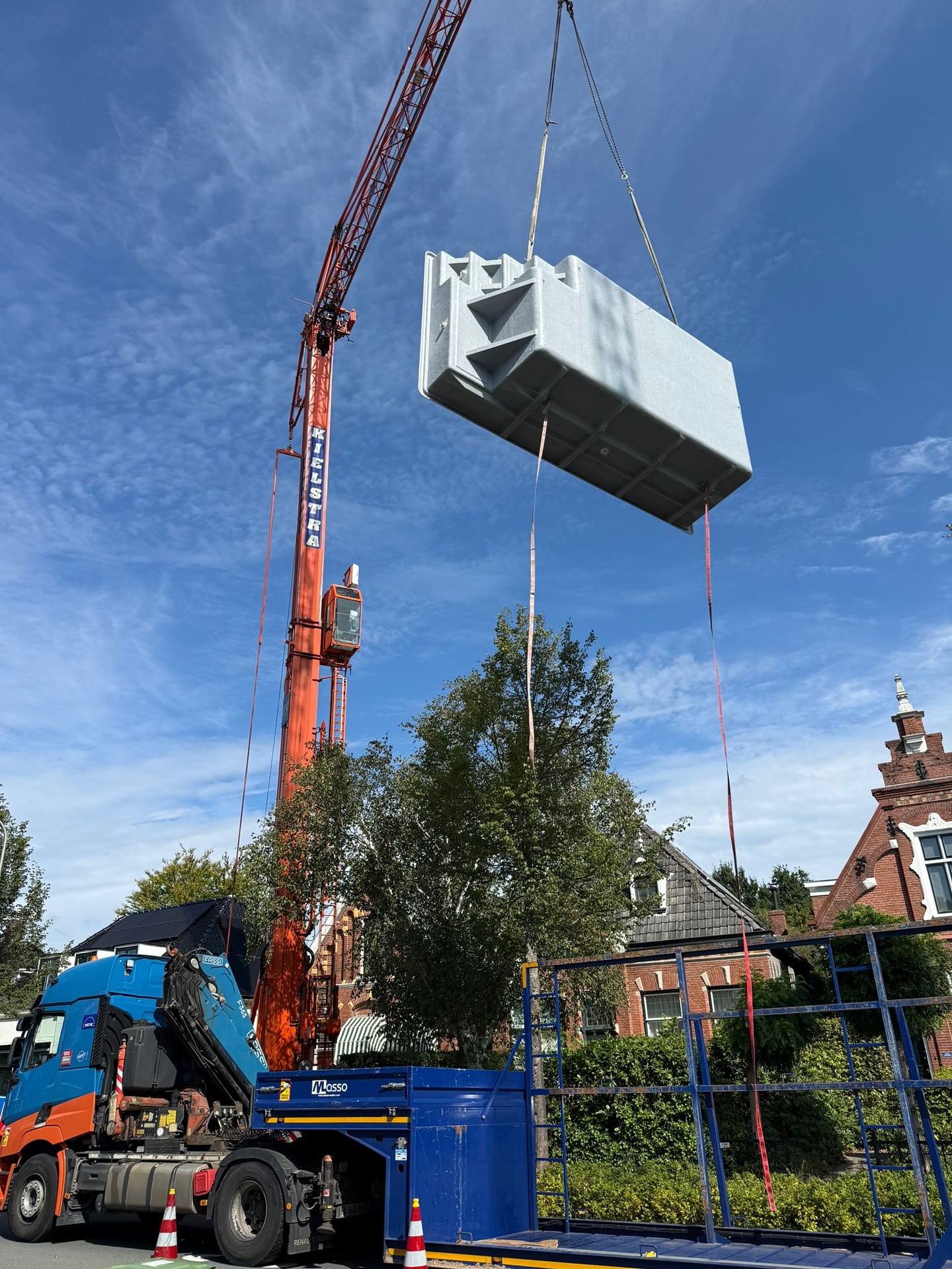 Met alle toeters en bellen hebben wij gezorgd voor een vlekkeloze uitvoering. Onze klant werd volledig ontzorgd: van de plaatsing zelf tot het regelen van alle randzaken. Uiteraard is alles uitgevoerd volgens de wettelijke richtlijnen, ondersteund door duidelijke bebording en professionele verkeersregelaars.