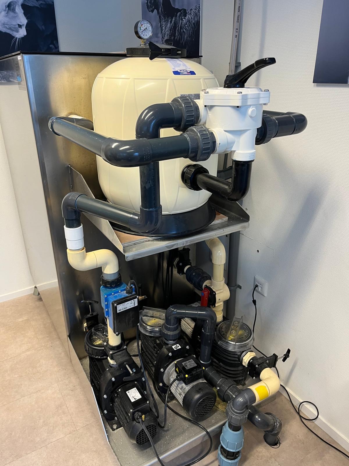 Bij dierenartspraktijk Hopmans in Roden hebben we de 25 jaar oude, perfect onderhouden aqua-hondentrainer voorzien van een nieuw filter en actief filtermedium.