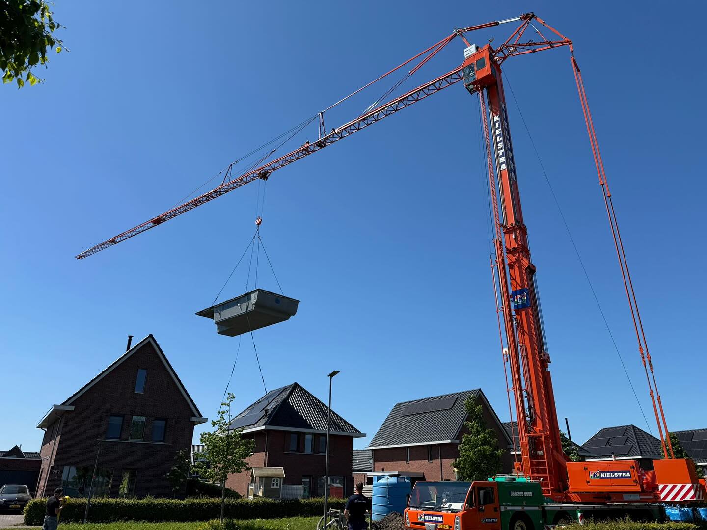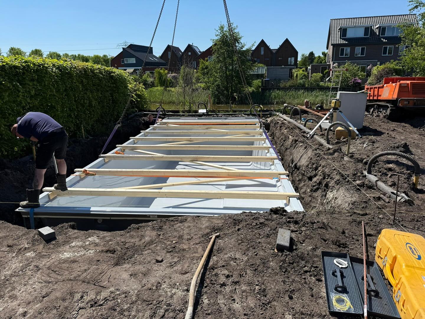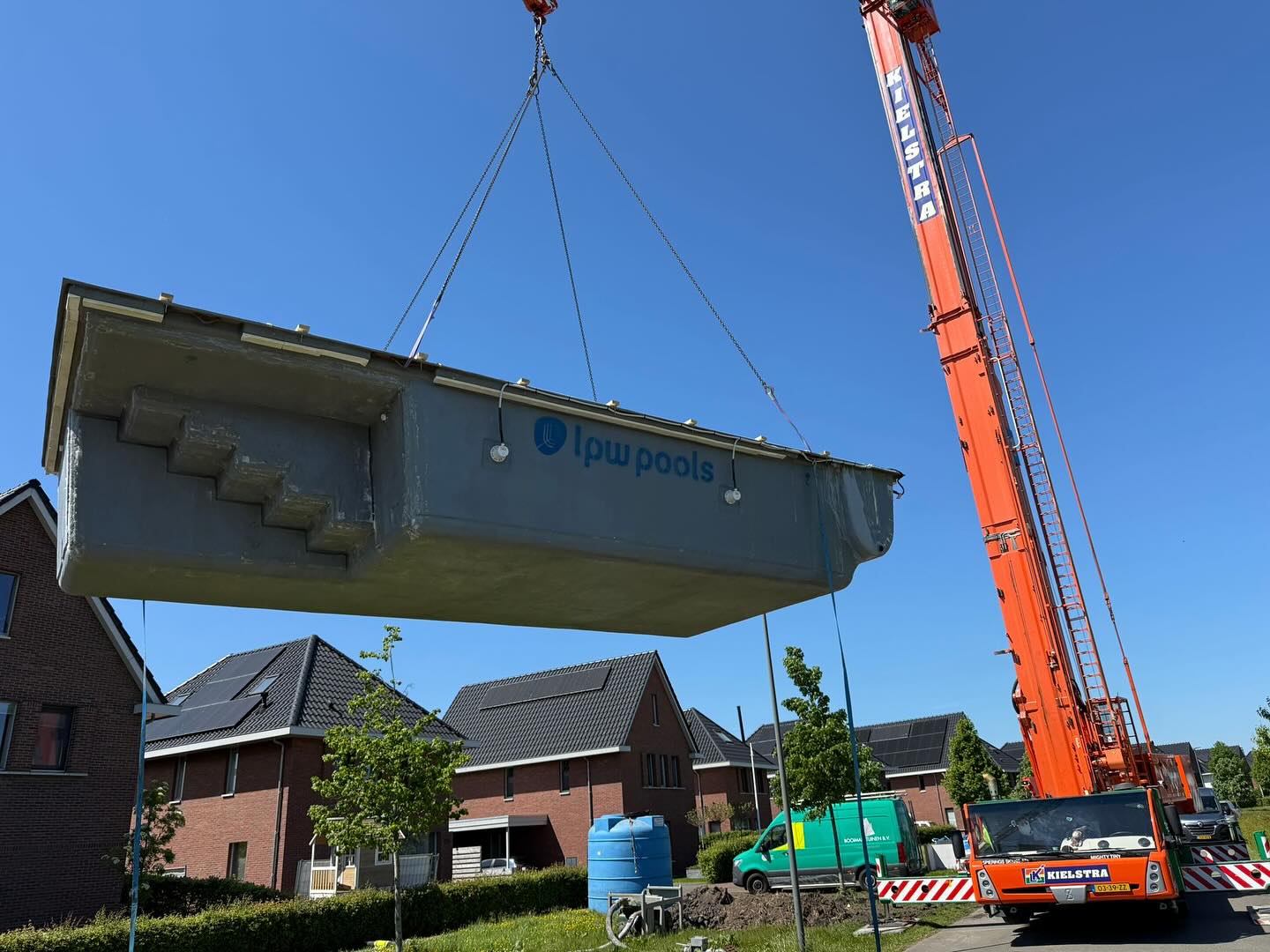 Deze week stonden er twee mooie plaatsingen op de planning. In Kropswolde plaatsten we een stijlvol aboral zwembad, en even verderop in Meerstad werd een LPW Pools Zenn vakkundig met een hijskraan over de woning heen getild.