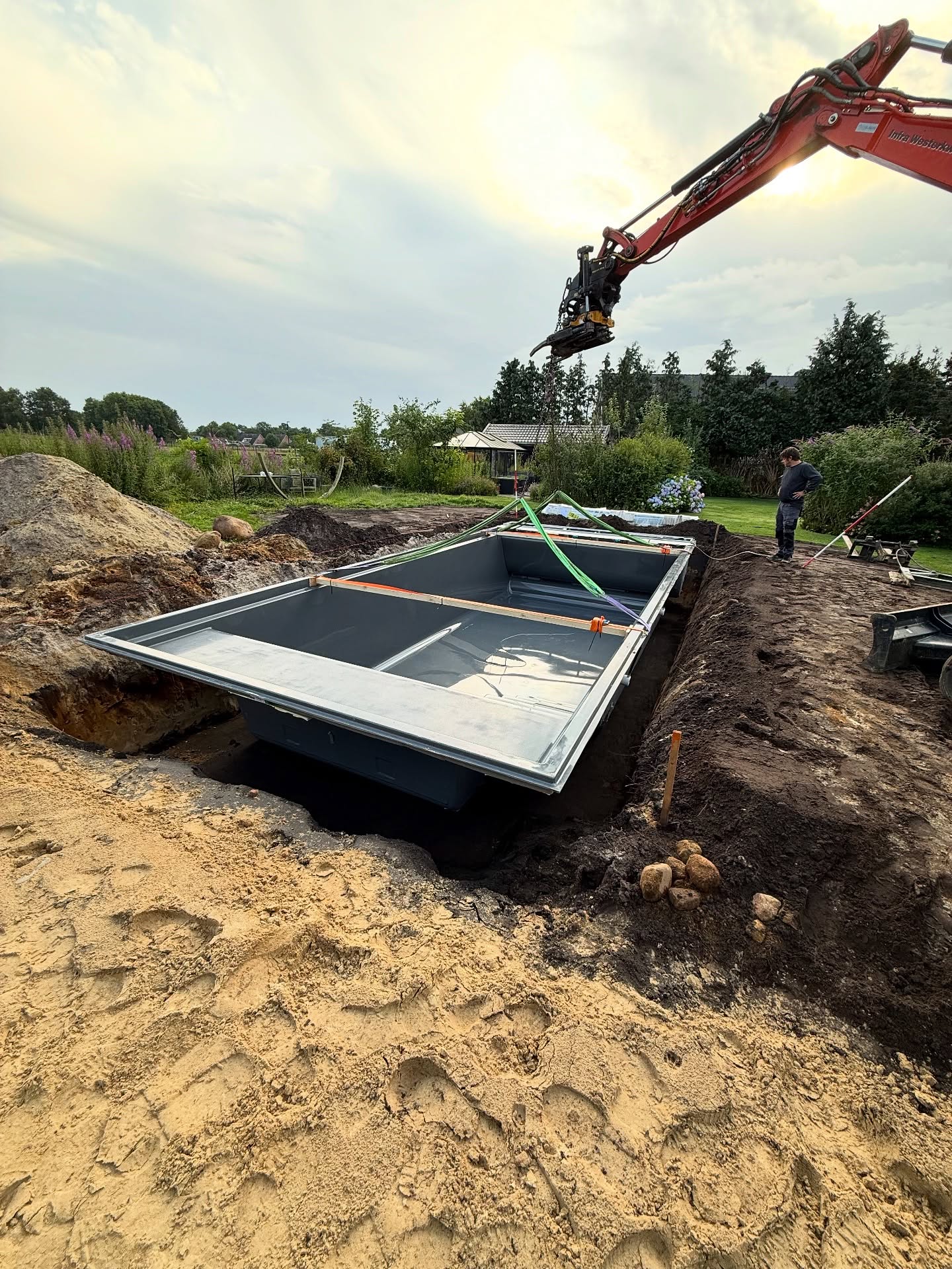 Samen met Infra Westerkwartier hebben we het riool aangelegd voor de wc in het toekomstige poolhouse. Alles moest strak en secuur – geen ruimte voor fouten. Ondertussen begonnen we met de voorbereidingen voor het zwembad, zodat daar straks zorgeloos van genoten kan worden.